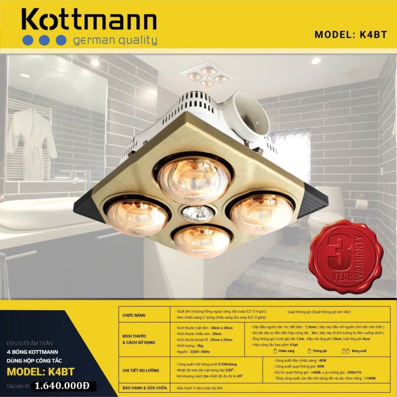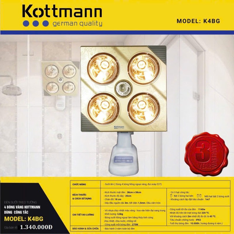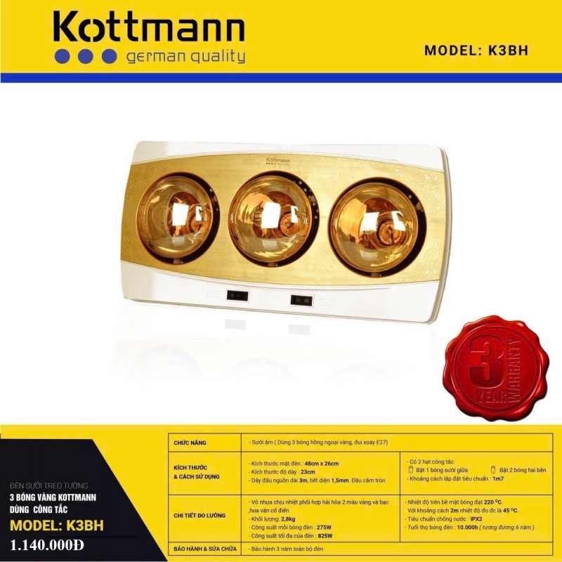Đèn sưởi nhà tắm Kottmann 3 bóng