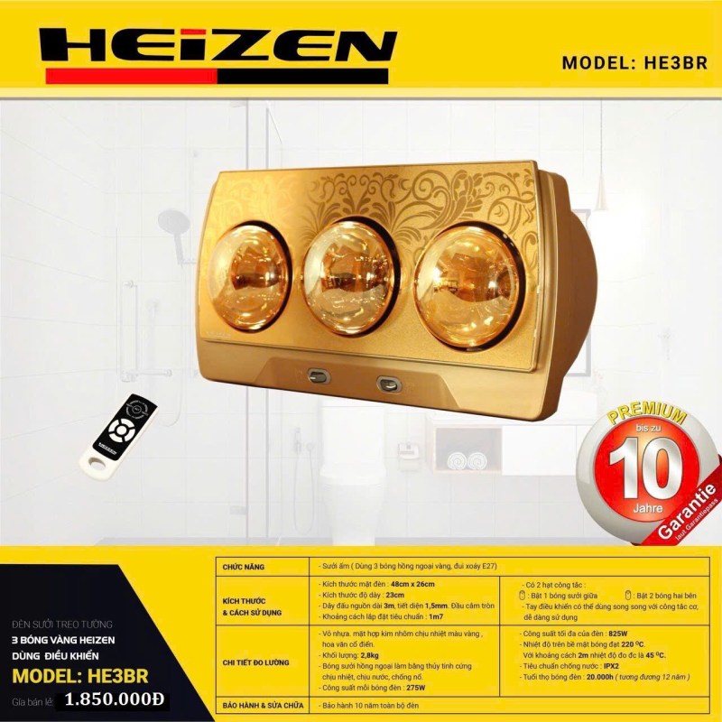 Đèn sưởi nhà tắm Heizen 3 bóng vàng