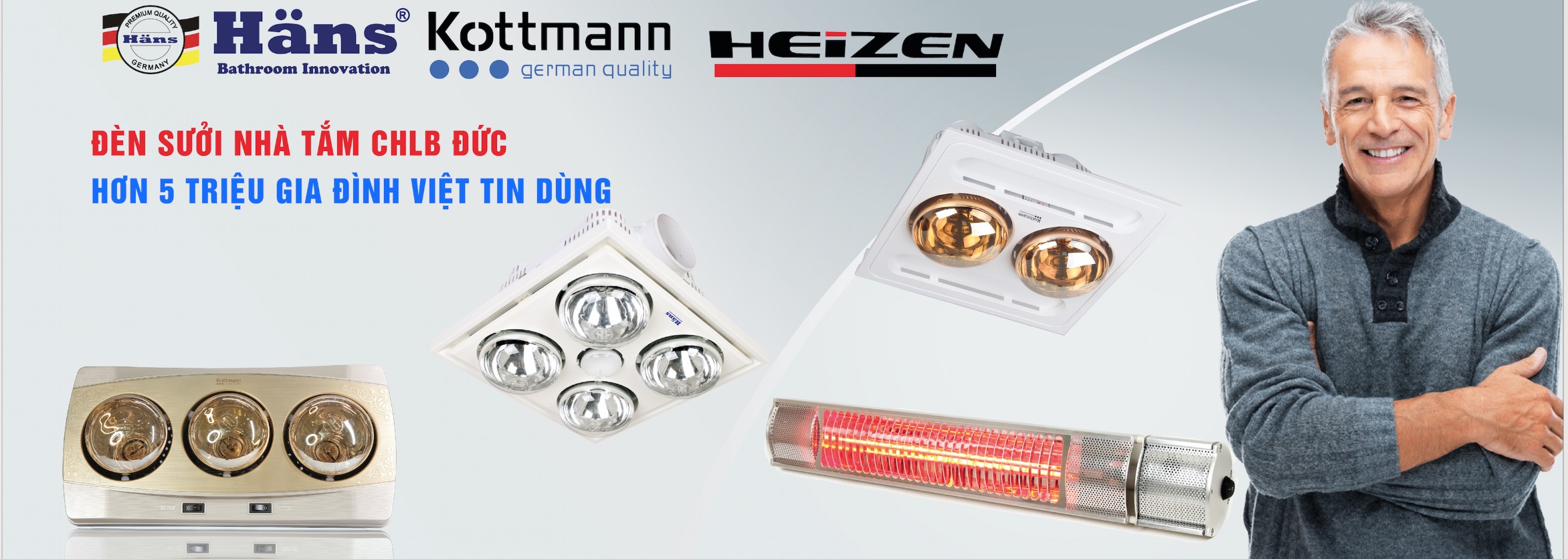 Đèn sưởi nhà tắm Kottmann 2 bóng thổi gió nóng K2B - HW-G