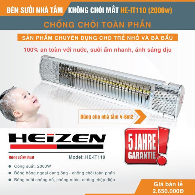 Đèn sưởi nhà tắm Heizen 2 bóng